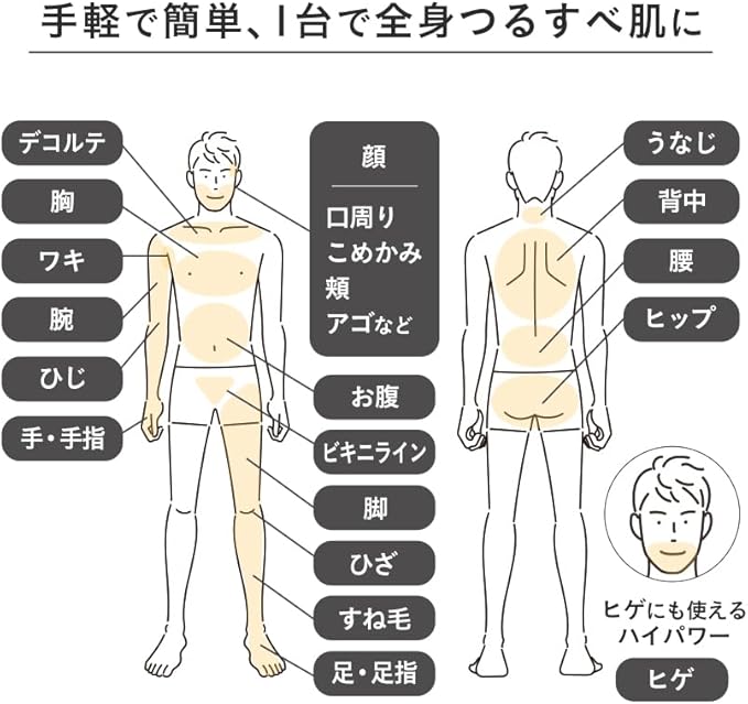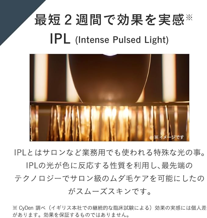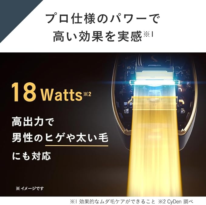 - 高いエネルギーを、速い照射スピードで供給し、高い効果を実感*。 *効果的なムダ毛ケアができること